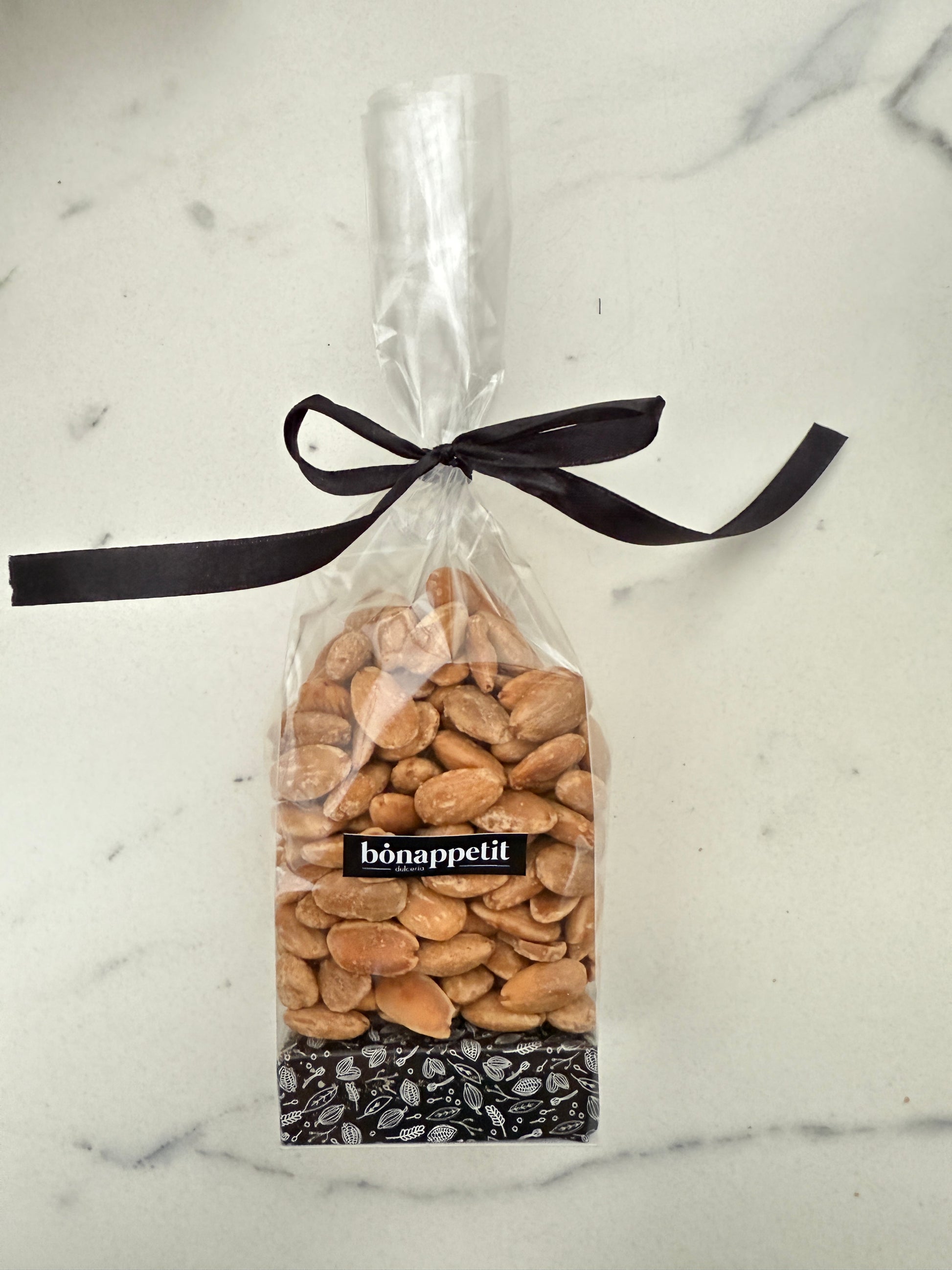 Bolsa de 200 gr de almendras peladas, saladas y tostadas.