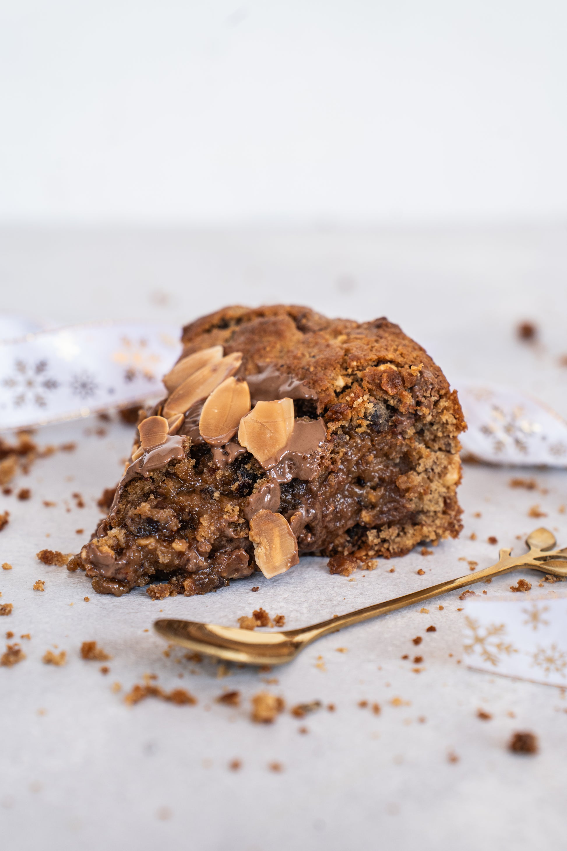 El mejor pan de pascua para mañosos! Húmedo, con chips de chocolate belga y almendras tostadas.